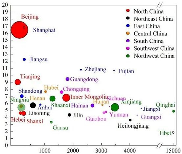中國城市地區(qū)的水再利用率已達到相對較低的水平,約為19.9%。同時,中國城市地區(qū)廢水排放量相當(dāng)可觀,2019年年處理量為657億立方米,其中近96.3%(633億立方米)得到處理。近日,“十四五”規(guī)劃(2021-25)提出,在這五年期間,將加強填海設(shè)施建設(shè),促進污水資源利用。新建、改建、擴建的再生水生產(chǎn)能力不得低于每天1500萬立方米。因此,在數(shù)量和應(yīng)用方面,進一步擴大水的再利用仍有巨大潛力。影響不同地方水資源再利用演變和進展的關(guān)鍵因素被確定為當(dāng)?shù)厝彼闆r和經(jīng)濟發(fā)展水平。