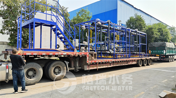 10月27日,山東某電廠2*75t/h除鹽水項目設(shè)備發(fā)貨,包括反滲透機組、超濾機組、鈉離子交換器、加藥裝置等設(shè)備,此項目出水用于鍋爐補給水。