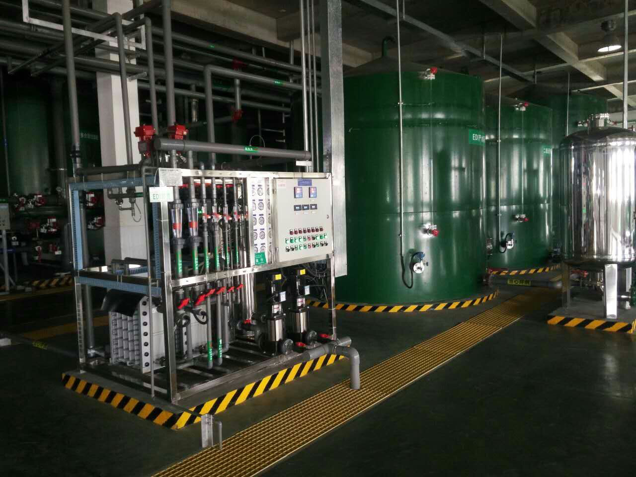 工藝流程:多介質(zhì)過濾器+雙級(jí)反滲透+EDI 處理水用途:鍋爐補(bǔ)給水