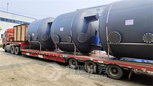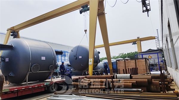今天發(fā)的是20臺(tái)大型多介質(zhì)過(guò)濾器加配件,它們單只高4.8直徑3.4,用17米的大車進(jìn)行裝運(yùn),每輛車裝3臺(tái),師傅們安全熟練的操作著兩個(gè)行車進(jìn)行調(diào)運(yùn)裝車。這次發(fā)貨持續(xù)了近兩天時(shí)間,陸續(xù)7輛大車進(jìn)來(lái)裝車,裝車后車隊(duì)緩緩的駛出廠區(qū),前往連云港港口,再通過(guò)海運(yùn)發(fā)往印尼項(xiàng)目現(xiàn)場(chǎng)。