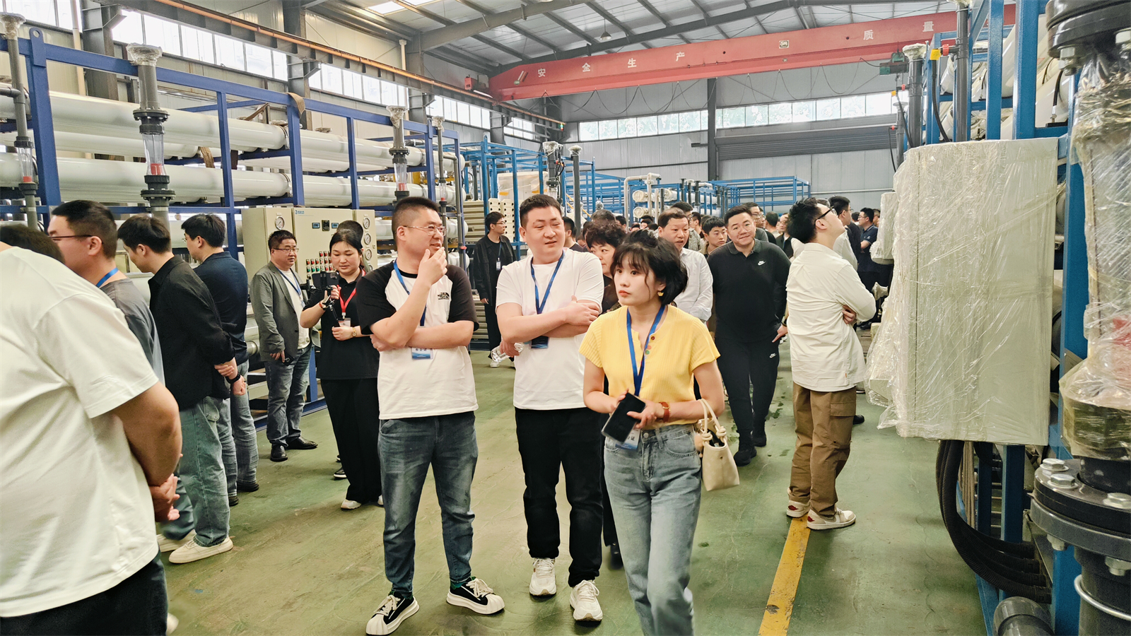 會議伊始,中國膜工業(yè)協(xié)會運維分會秘書長苗偉先生、山東格瑞水務(wù)董事長李新春先生先后致辭,分別從行業(yè)發(fā)展趨勢與企業(yè)責(zé)任視角,強調(diào)膜法水處理技術(shù)在水資源循環(huán)利用中的戰(zhàn)略價值。隨后,在格瑞水務(wù)副總經(jīng)理山志國的引領(lǐng)下,參會嘉賓實地參觀了企業(yè)智能化生產(chǎn)廠區(qū),近距離了解水處理研發(fā)、水處理系統(tǒng)設(shè)備生產(chǎn)的全流程工藝。