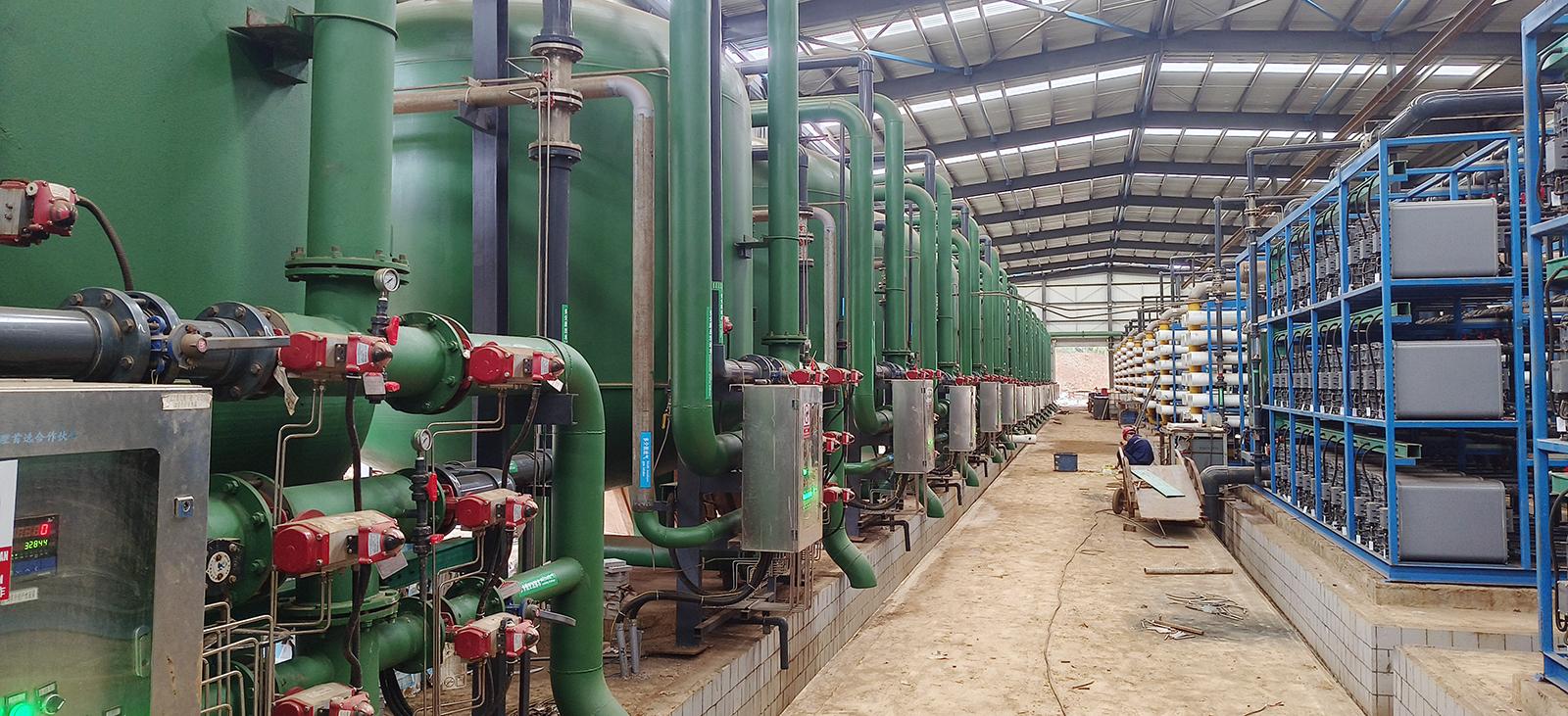 工藝流程:多介質(zhì)過濾器+活性炭過濾器+超濾+雙極反滲透+EDI裝置